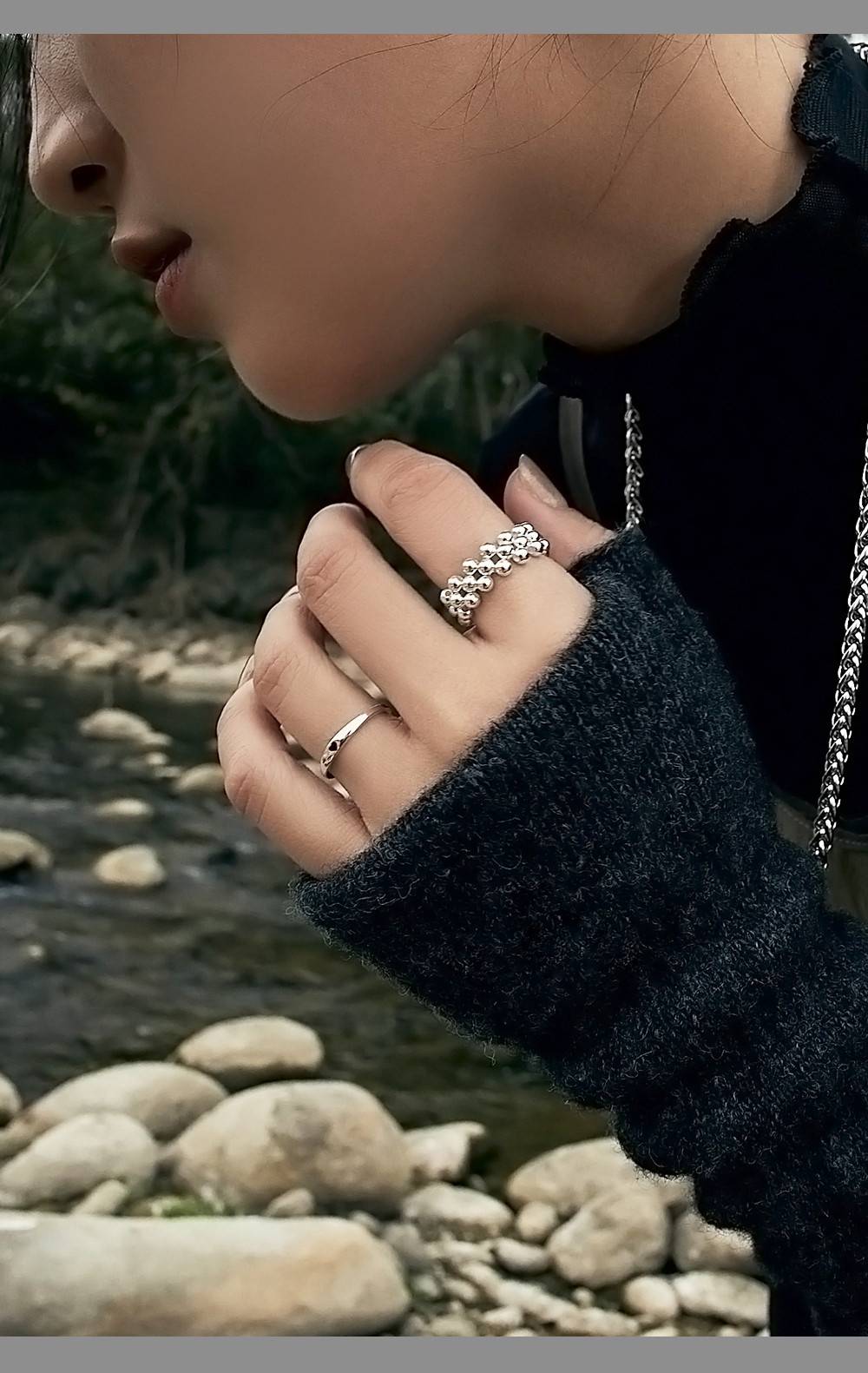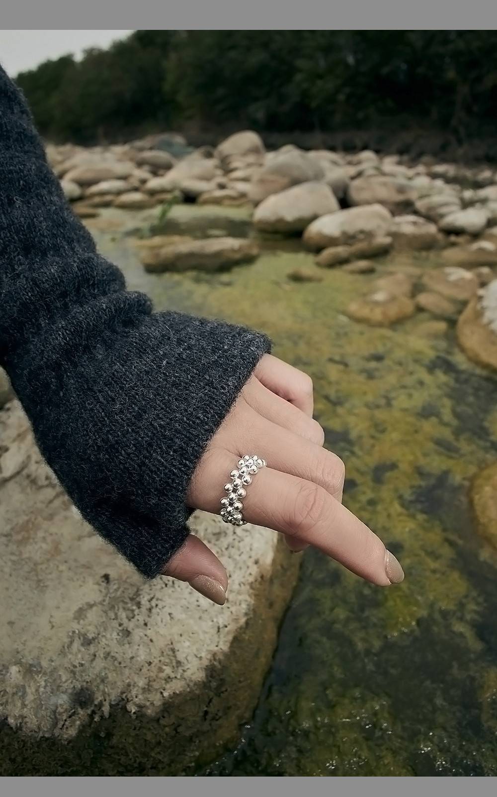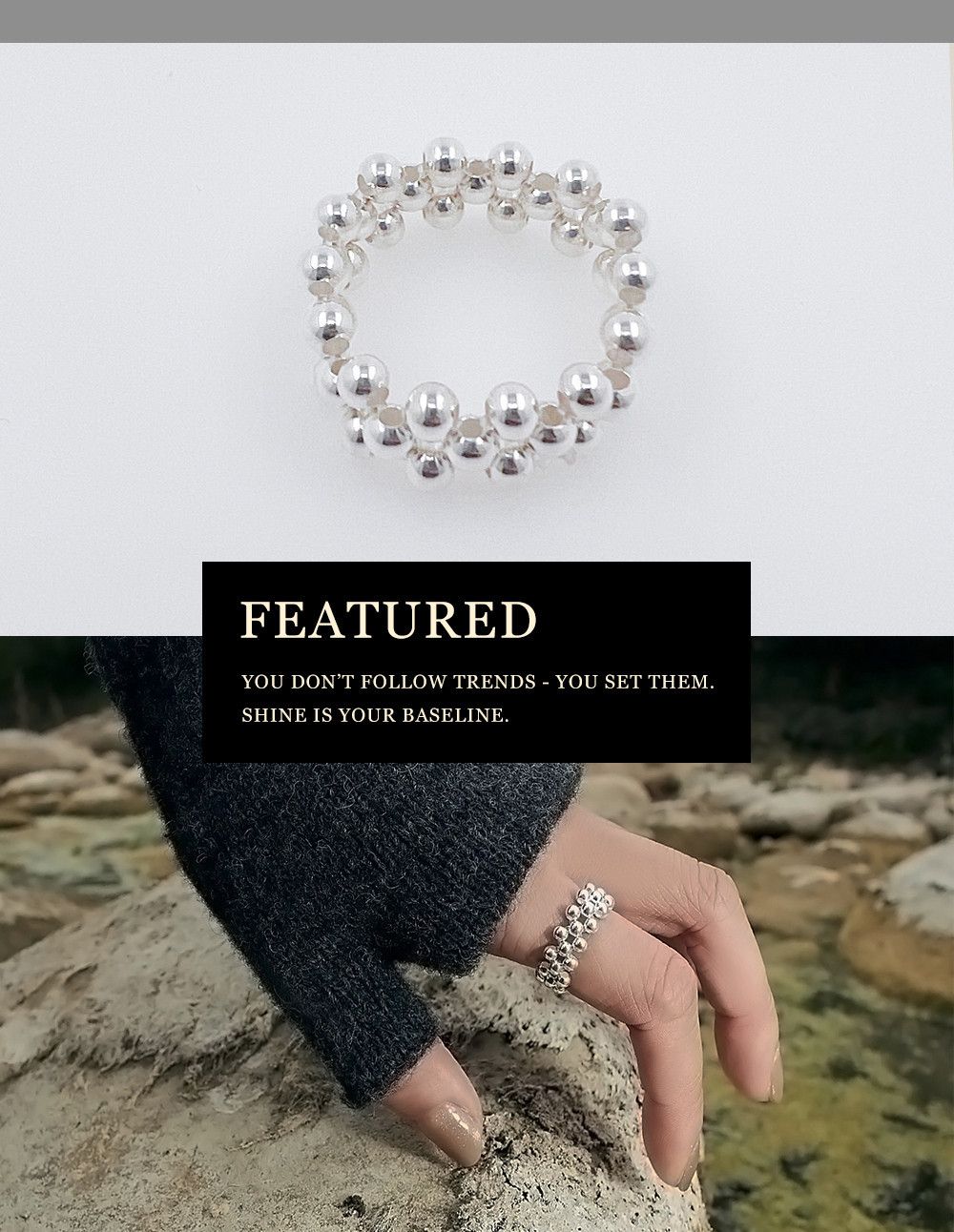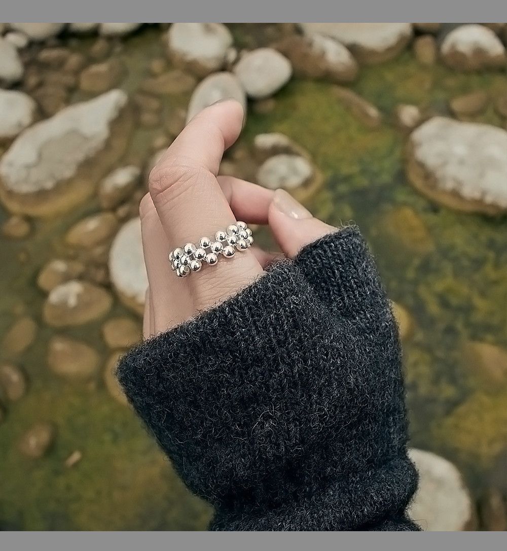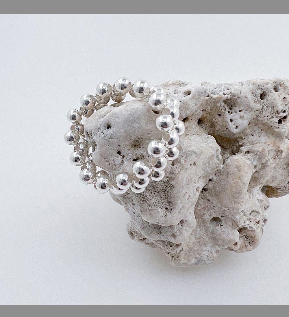 銀珠彈力寬版戒指 S925純銀,HUE.S