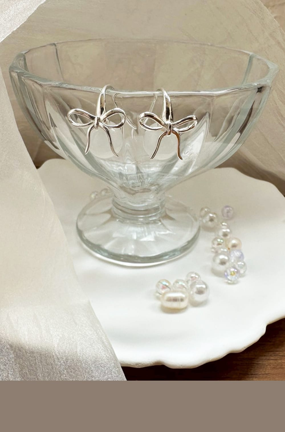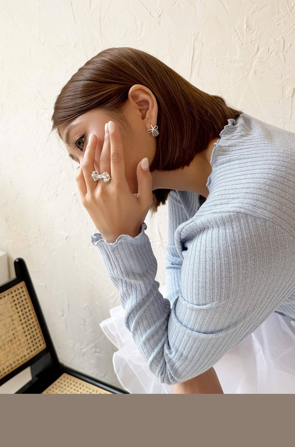 蝴蝶結白玉耳環 S925純銀,HUE.S