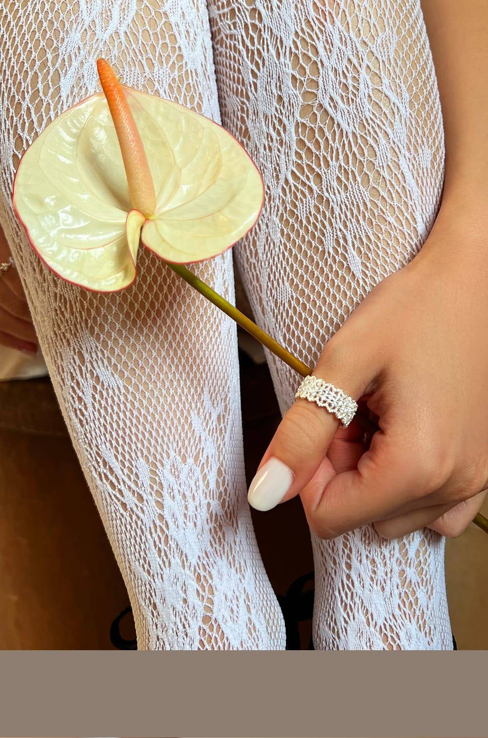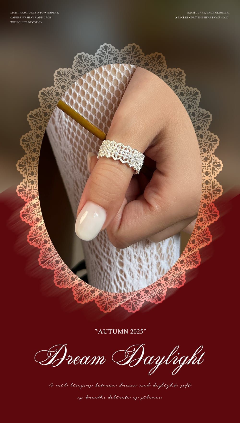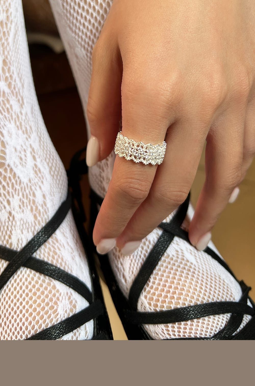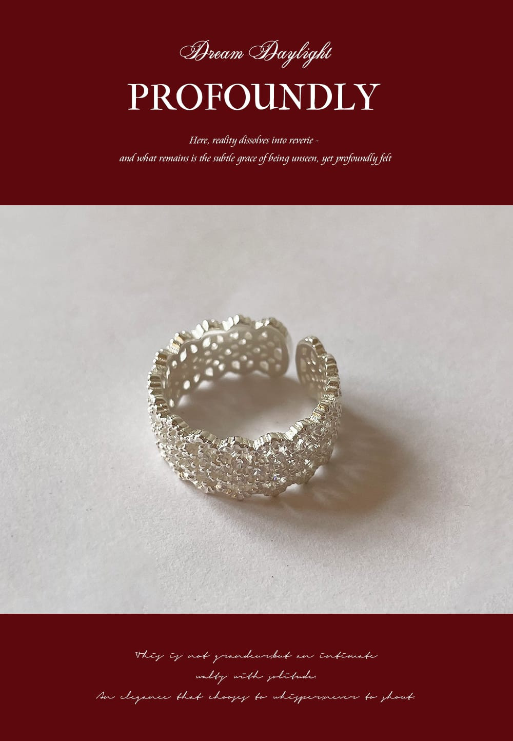 鏤空鋯石蕾絲戒指 S925純銀,HUE.S