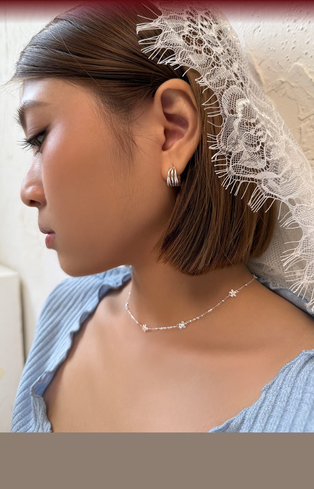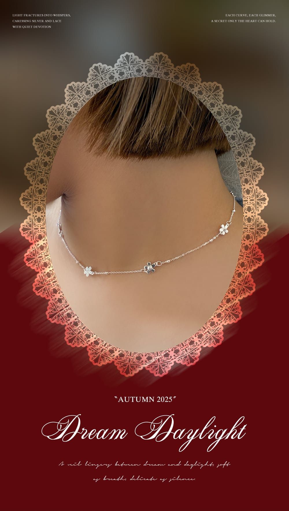 花朵細鑽設計項鍊 S925純銀,HUE.S