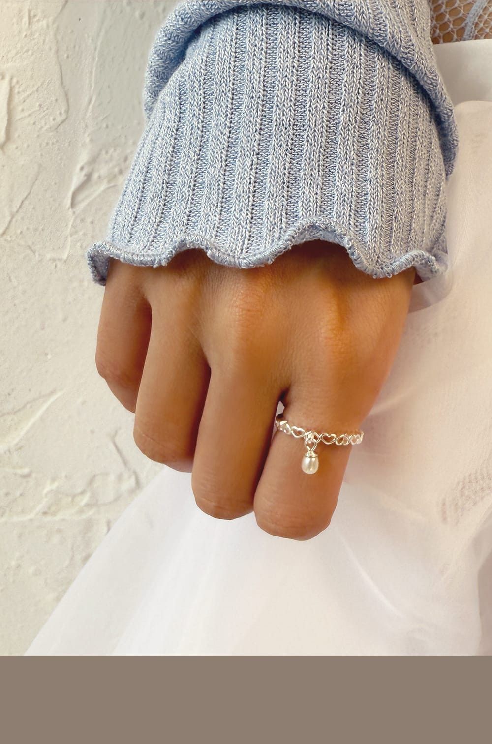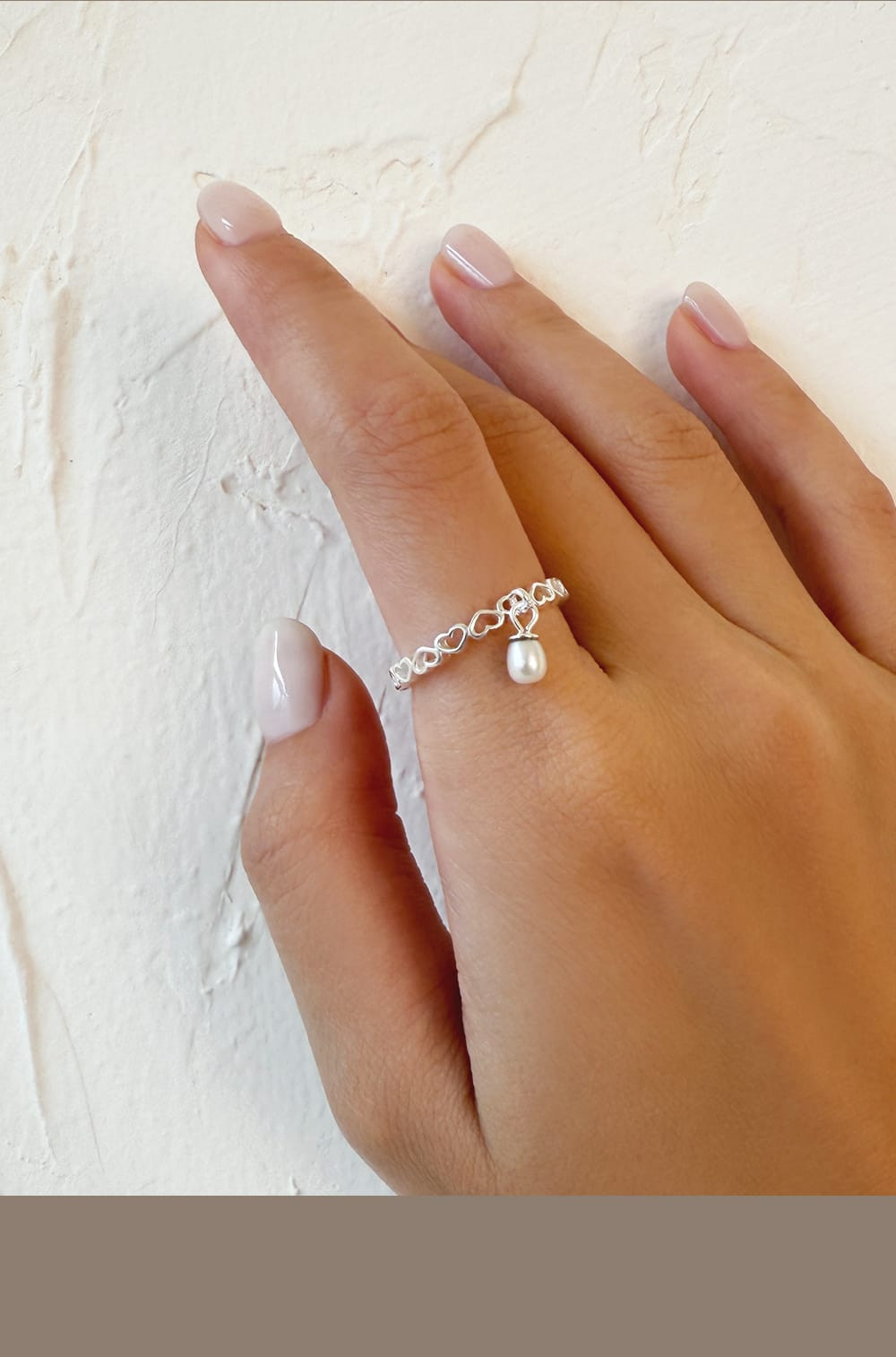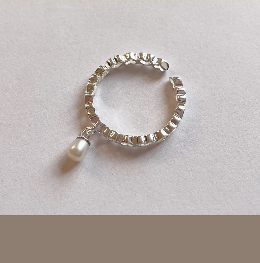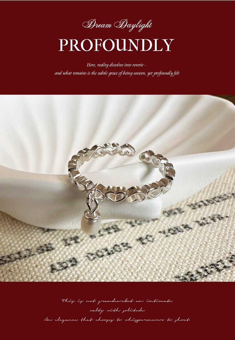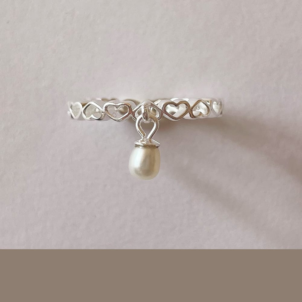 珍珠吊墜心型環戒指 S925純銀,HUE.S