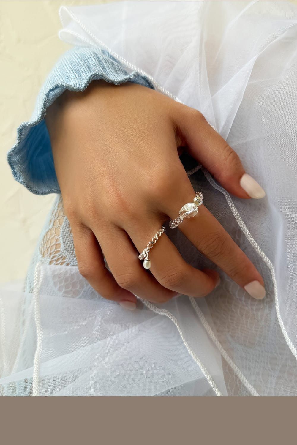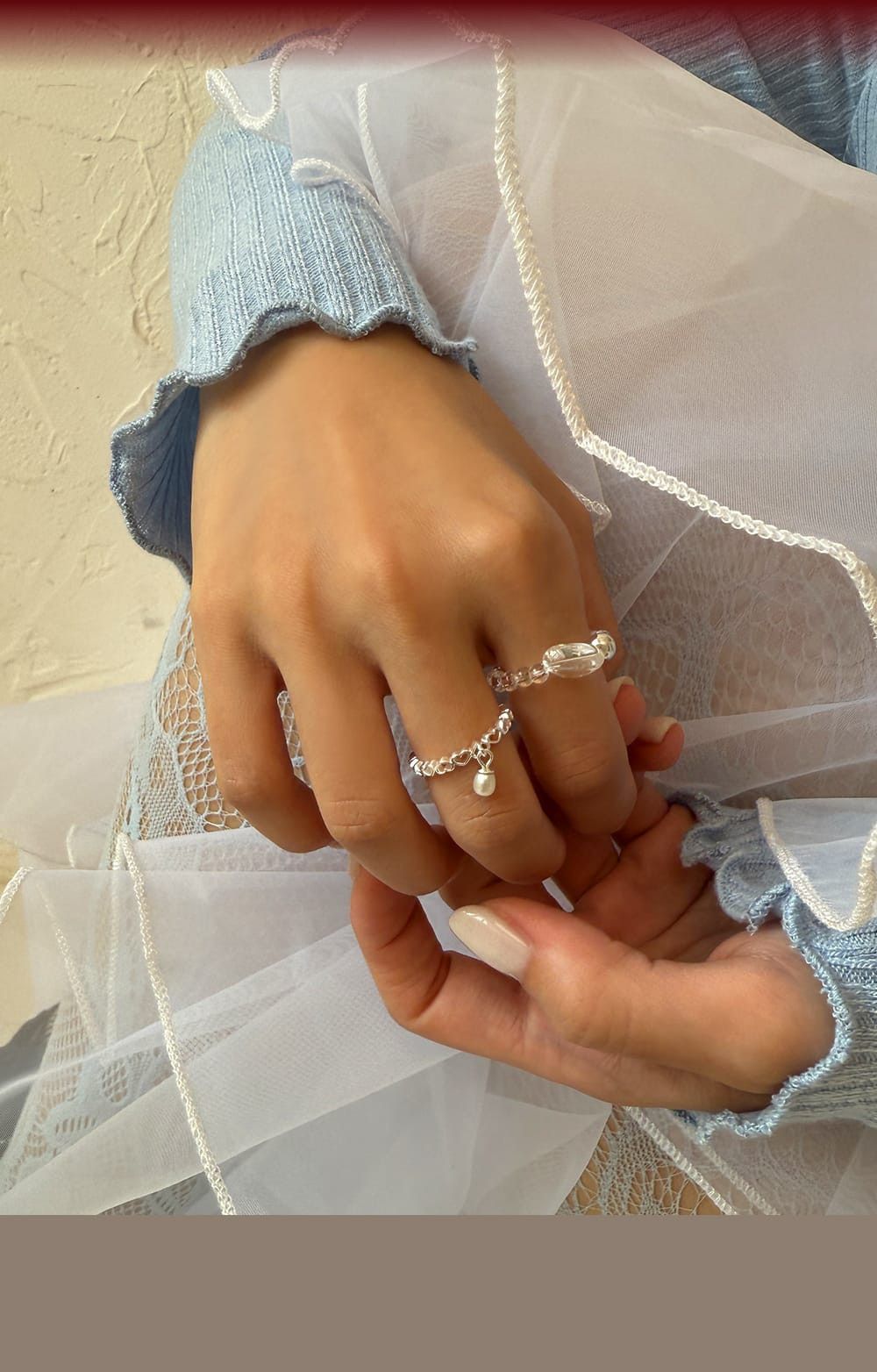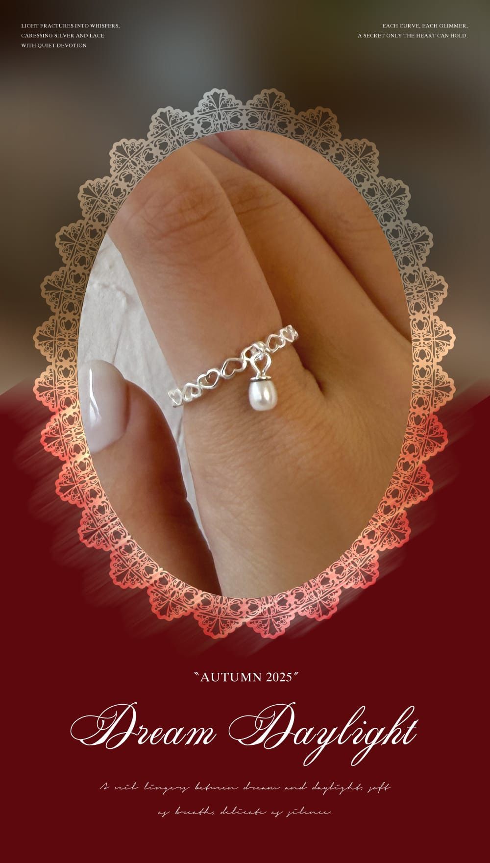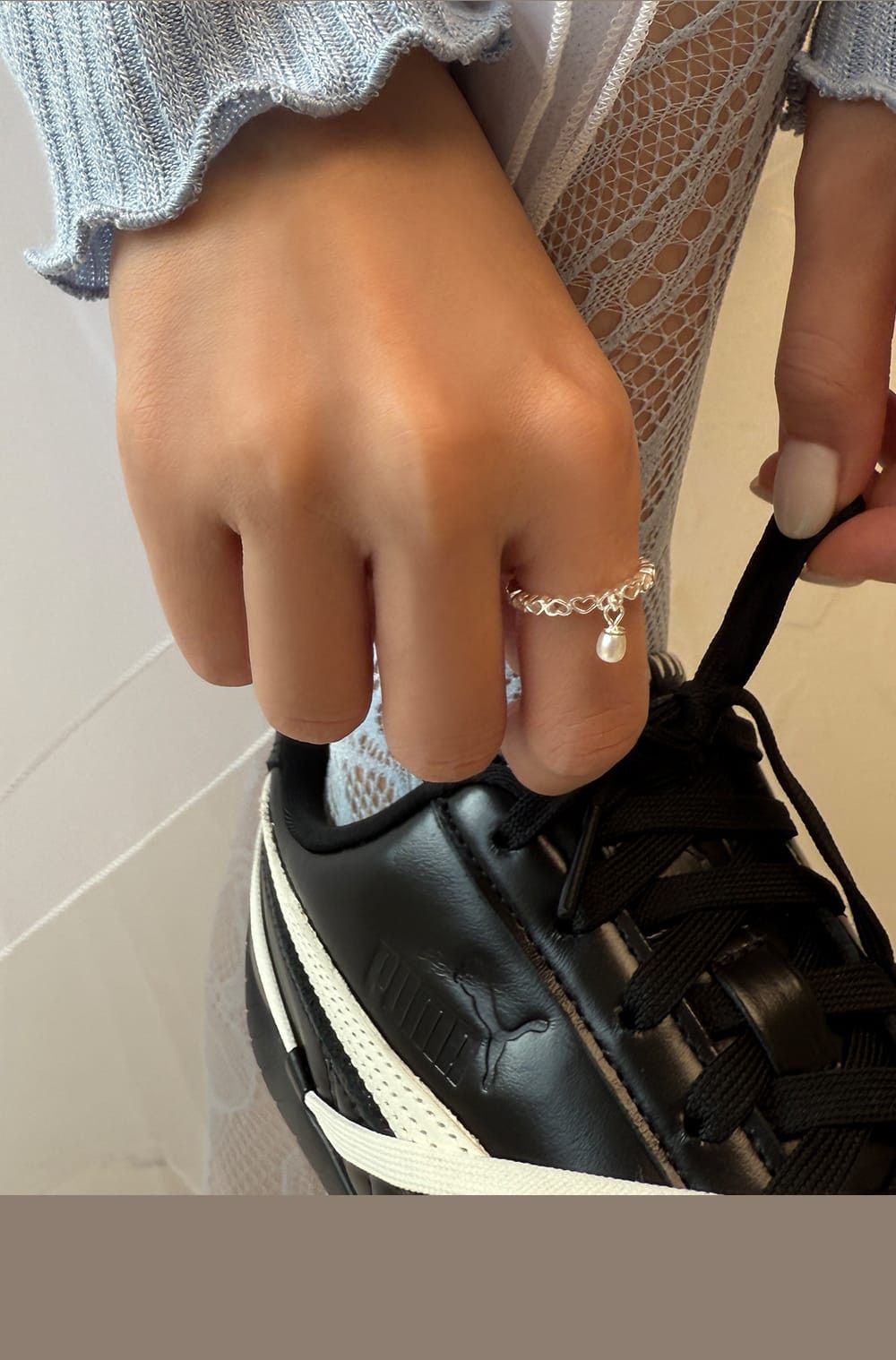 珍珠吊墜心型環戒指 S925純銀,HUE.S
