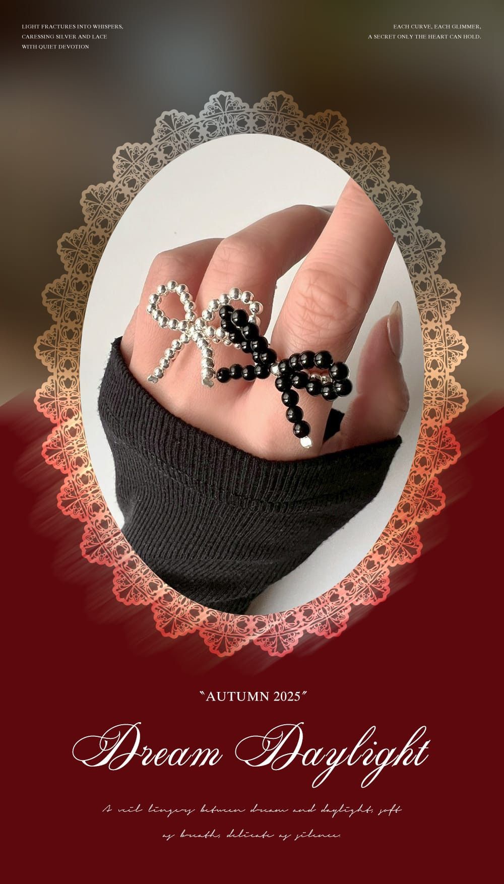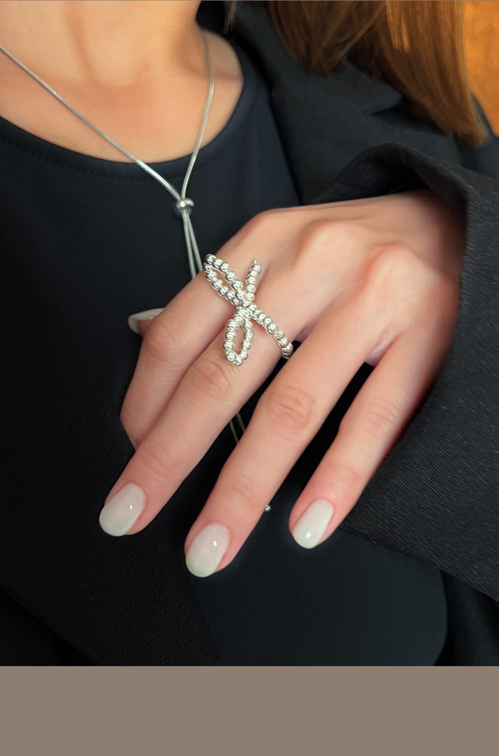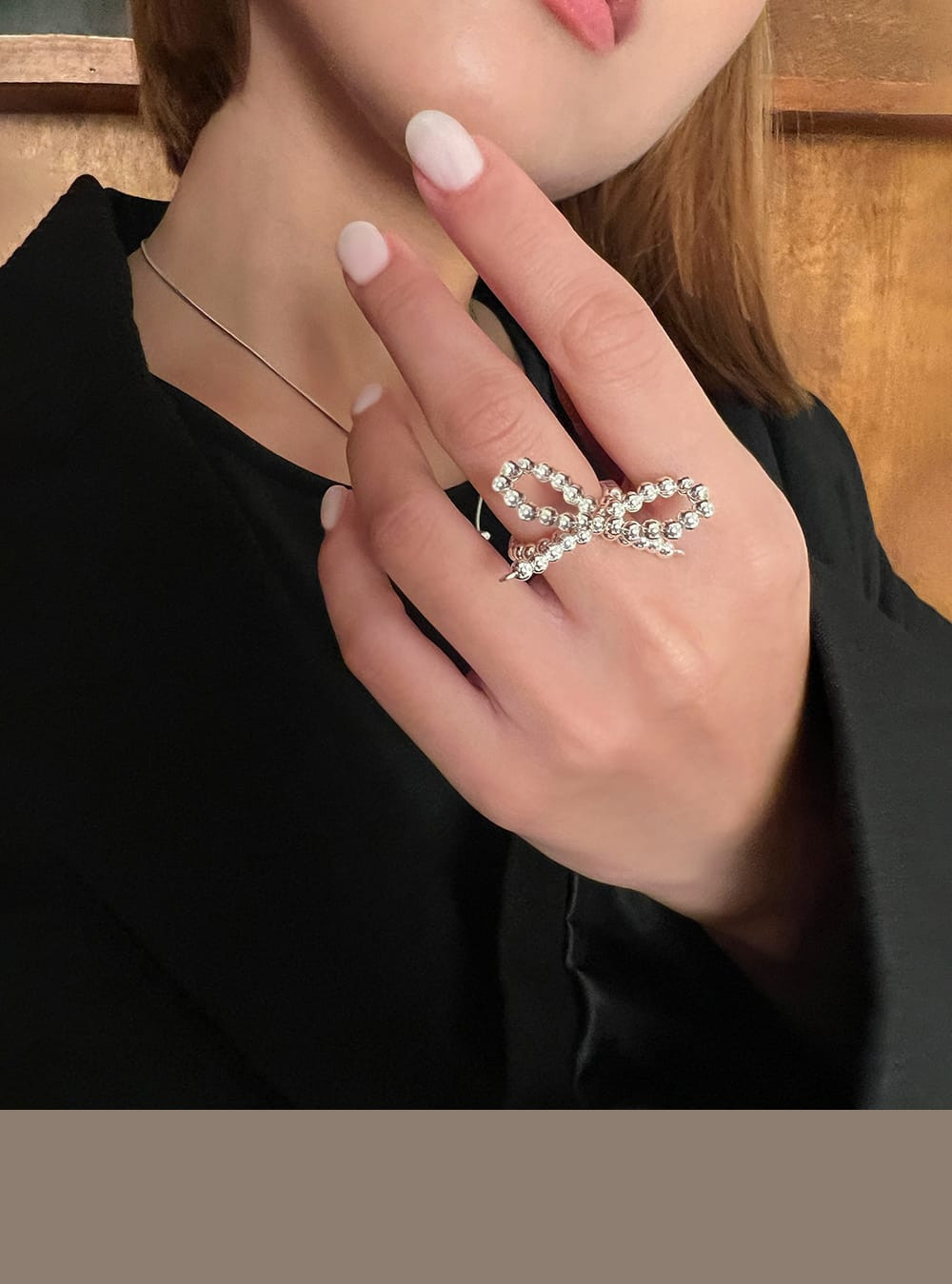 銀珠蝴蝶結戒指 S925純銀,HUE.S