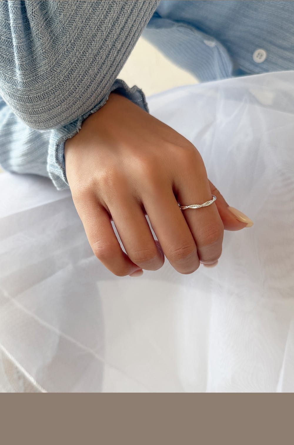 扭結螺旋線條閉口戒 S925純銀,HUE.S