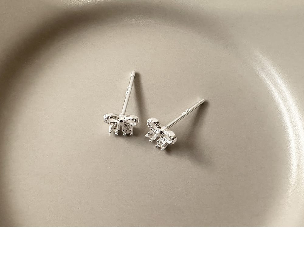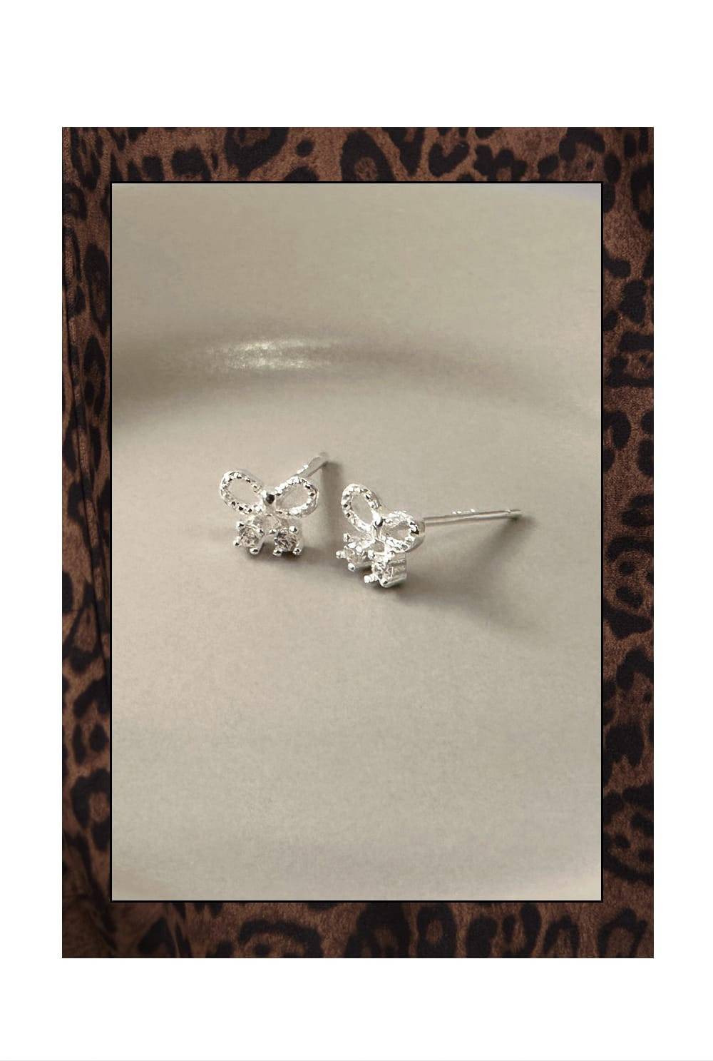 鋯石蝴蝶結耳針 S925純銀,HUE.S