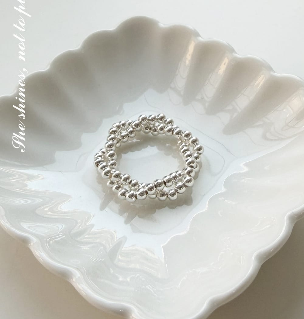 雙層環繞銀珠彈力戒 S925純銀