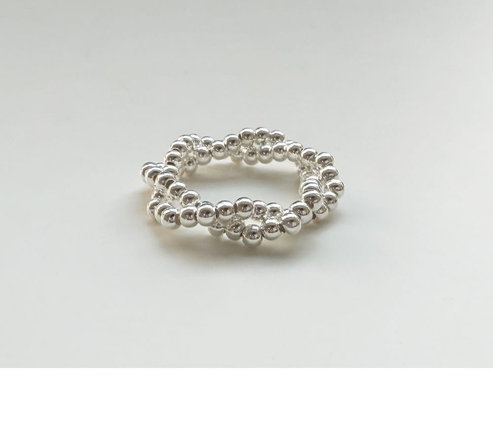 雙層環繞銀珠彈力戒 S925純銀,HUE.S